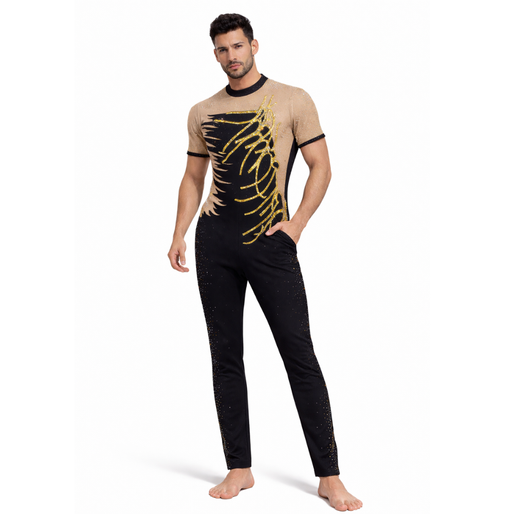 Step into confidence with the Black and Skin Tone Half-Sleeve Unisex Unitard, designed for athletes and performers who want a powerful stage presence with maximum comfort. This premium unisex unitard features a striking black and skin-tone colour block design with a bold abstract print that gives a sleek, professional look.