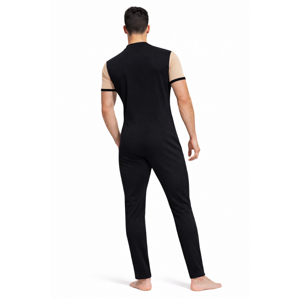 Black and Skin Tone Half-Sleeve Unisex Unitard