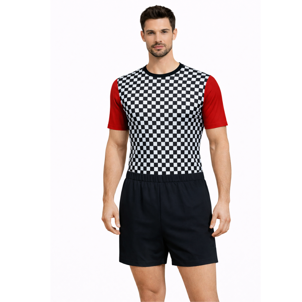 - The unique black-and-white check print on the front adds a lively and energetic visual appeal, helping athletes stand out with style.