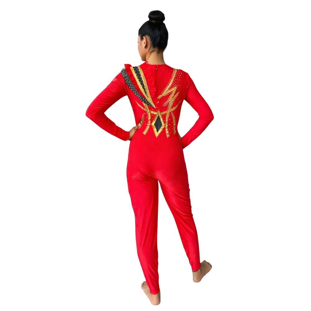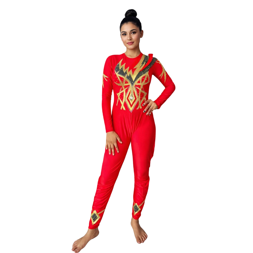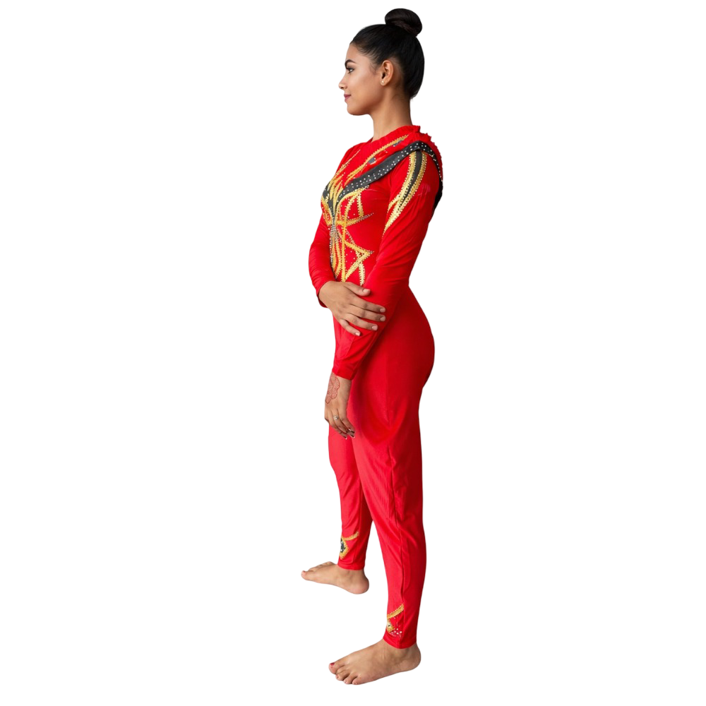 Extremely Exclusive Crimson Gold Unitard for Yoga, Silk Aerial, Dance Performance, Roller & Ice Skating