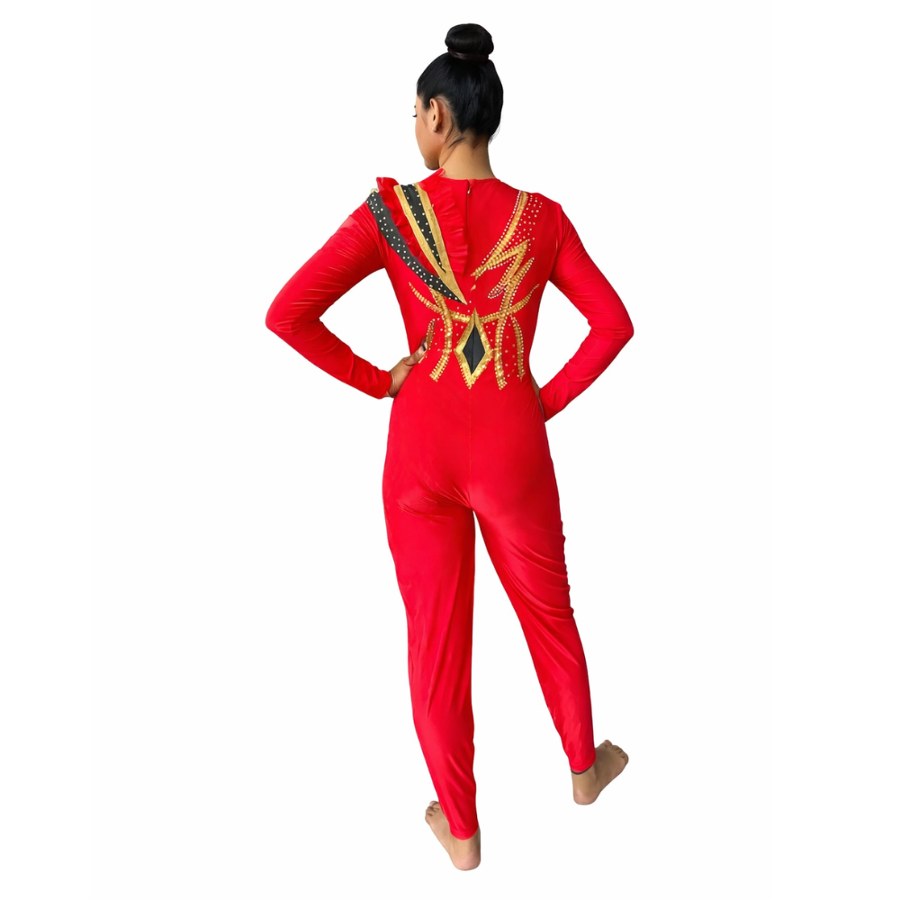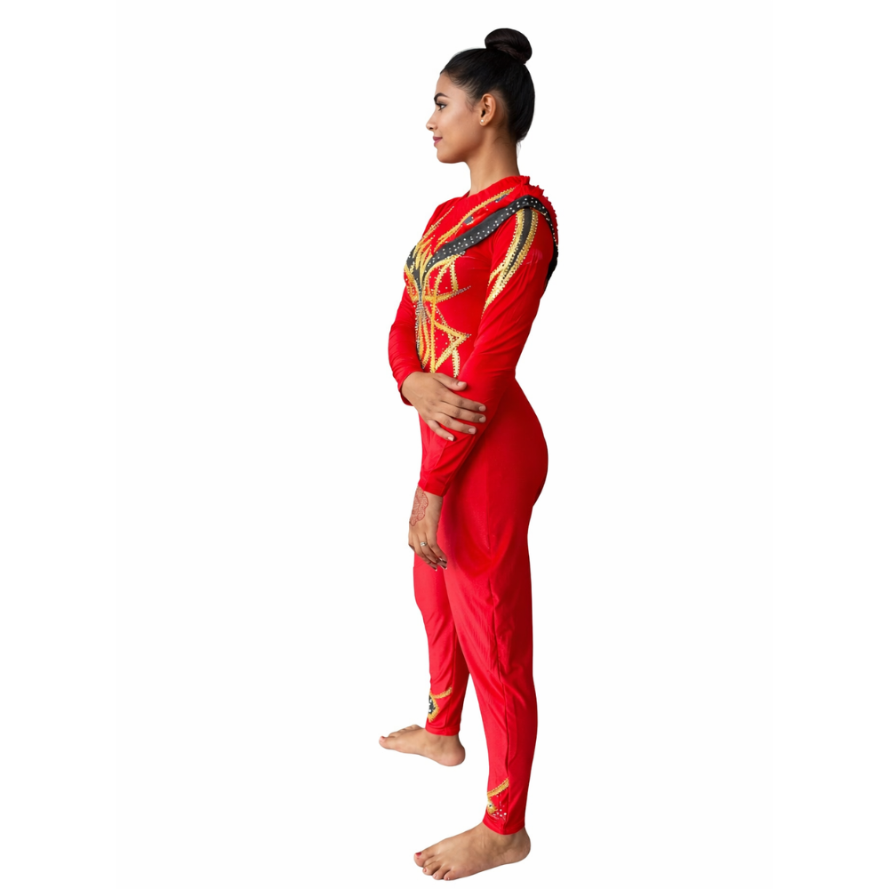 Crimson Gold Unitard For Yoga And Ice Sakting