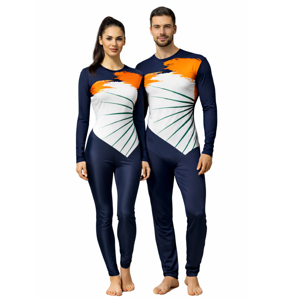 Unisex Tricolour Full-Sleeve leotard with Blue Slex, the perfect activewear for yoga, cycling, acrobatics, aerobics, ice skating, roller skating, artistic skating, figure skating and any physical activity. Designed for comfort and flexibility, this versatile costume is made from a breathable, stretchable fabric that adapts to your movements, ensuring freedom and support no matter the challenge. The full sleeves offer added coverage and protection, while the blue Slex provide a stylish modern look. Whether you’re working up a sweat in the gym, hitting the road on your bike, or practicing intricate yoga poses, thisleotardt moves with you, offering durability and performance in every situation. The tricolour design adds a bold touch, combining vibrant shades for a standout appearance, while the moisture-wicking material ensures you stay cool and dry during intense sessions. Its unisex fit is suitable for all body types, making it a must-have for anyone looking to elevate their activewear wardrobe. Whether you’re a fitness enthusiast or simply seeking comfort in everyday activities, the Unisex Tricolour Full-Sleeve leotard with Blue Slex offers the perfect blend of function, style, and versatility. Get yours today for ultimate performance in every activity!