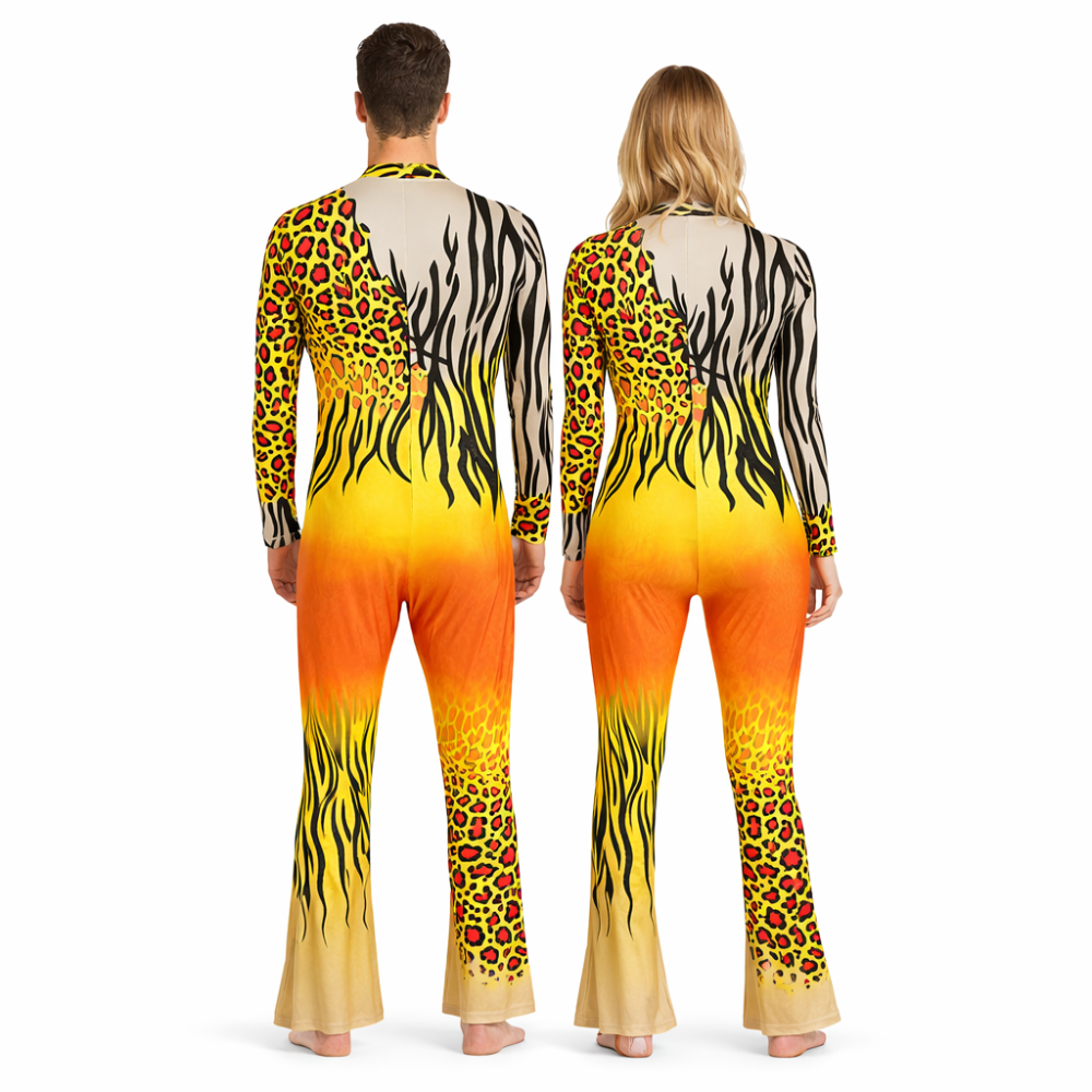 Made from high-performance Lycra, offering the ultimate trifecta of stretch, breathability, and sweat control. The outfit keeps you cool and mobile even through the most intense sequences. The boldness of the sublimated wild-animal prints remains intact even after endless shows, making it go-to gear for themed acts, competitions, and solo performances.