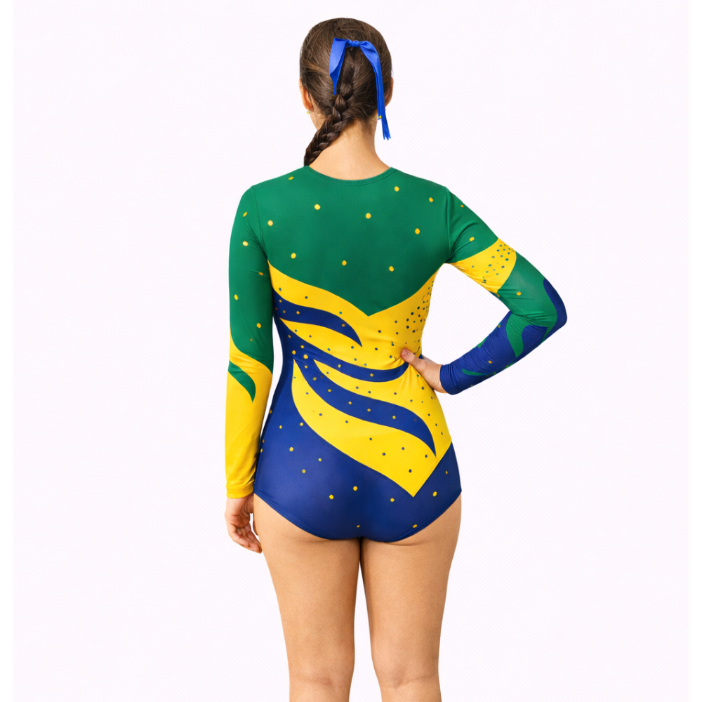 Stand out with our Bottle Green, Blue & Yellow Full-Sleeve Leotard featuring an exclusive and eye-catching design. Made from premium-quality fabric, this leotard is comfortable, durable, and highly stretchable, ensuring maximum flexibility and support during every move.