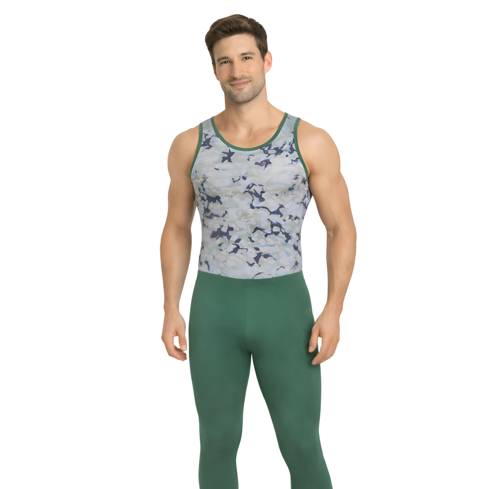 The Militia Men Costume Set is built for athletes who want maximum flexibility, comfort, and an impactful stage-ready look. Designed in a powerful Green & Grey military-inspired pattern, this costume combines a bold camo-style upper with a sleek solid green bottom, creating the perfect fusion of style + performance.