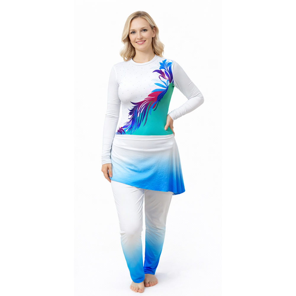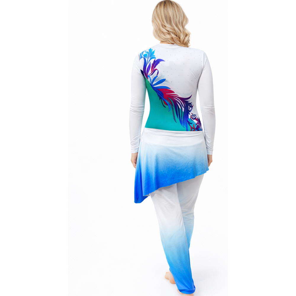 - Leggings: Comes with matching white and blue ombré leggings, offering complete leg coverage, perfect stretch, and a refined, elegant look.