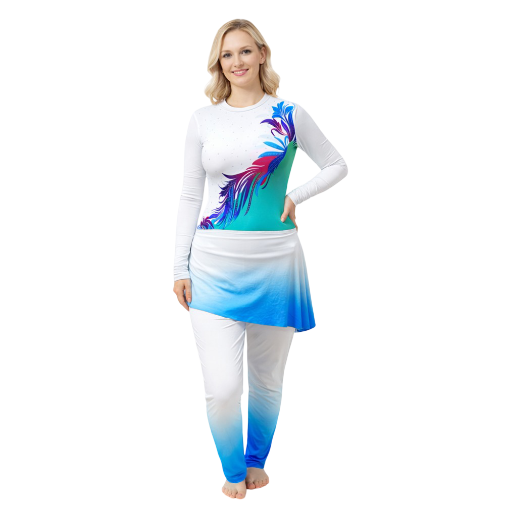 - Leggings: Comes with matching white and blue ombré leggings, offering complete leg coverage, perfect stretch, and a refined, elegant look.