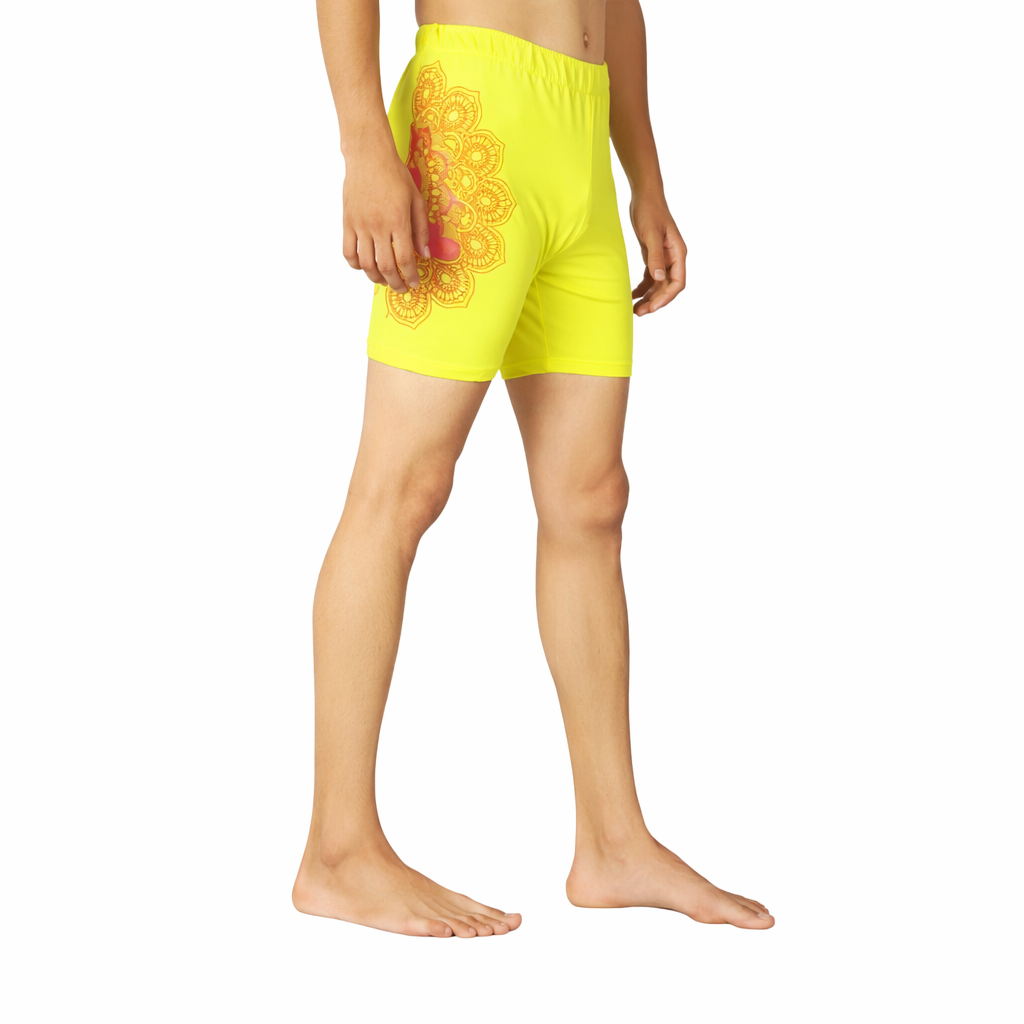 Upgrade your activewear with our Neon Green Unisex Half Buddha Statue Performance Shorts, designed for comfort, stretch, and all-day movement. Made with premium Lycra fabric, these performance shorts offer a snug fit with excellent flexibility, making them perfect for yoga, gymnastics, cycling, running, workouts, aerobics, and other training sessions.