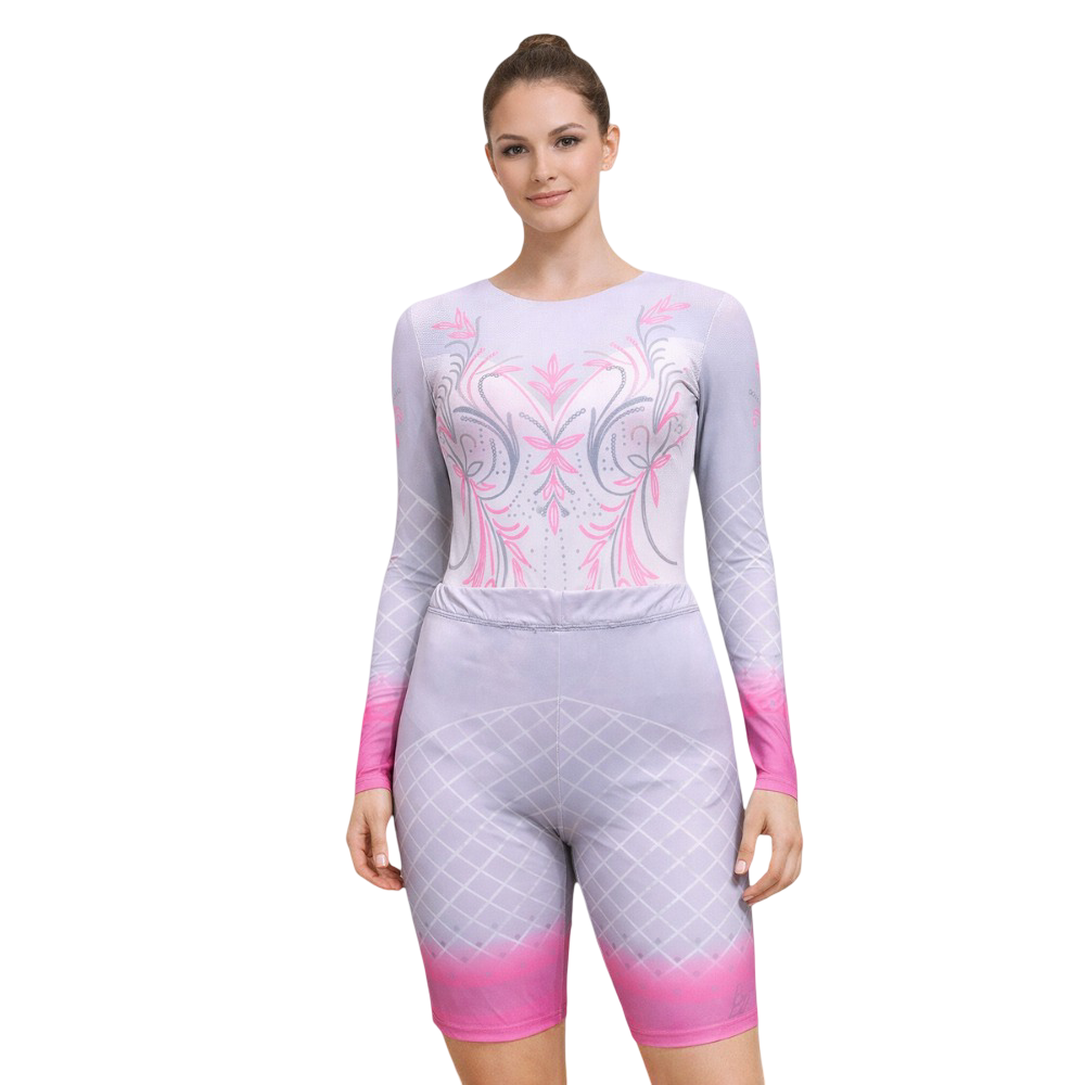 Lightweight, breathable, and stylish, this leotard-with-shorts set keeps you confident and performance-ready, whether you’re training or stepping onto the competition floor.