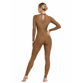 Made from premium, fully stretchable lycra fabric, it offers unmatched flexibility and comfort. The back zipper ensures easy wear, while the entire piece is randomly embellished with golden rainbow stones, adding just the right amount of shimmer for stage or practice.