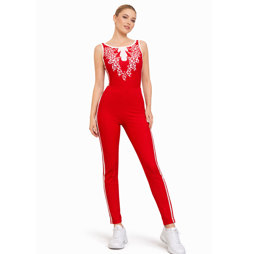 Red Sleeveless Leotard with Leggings