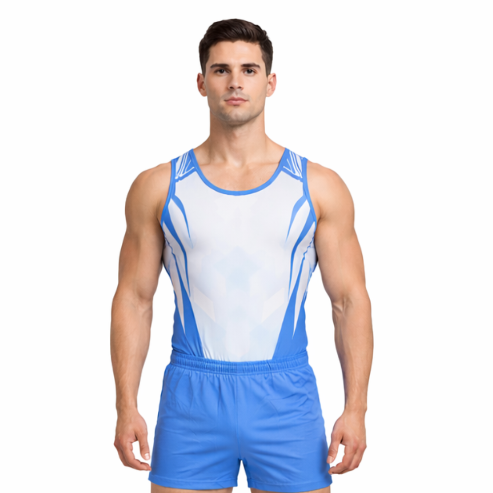 Upgrade your training and performance wardrobe with the Printed Blue Squad Men Competitive/Training Costume, designed for athletes who need maximum flexibility, comfort, and durability. Featuring a blue & white sporty print, this outfit is created to support high-intensity movement while keeping you confident on the mat, floor, stage, or gym.