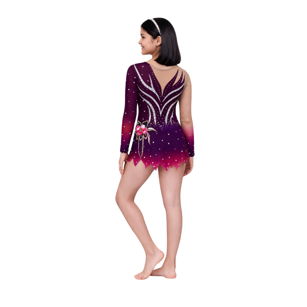 Designed to captivate the audience and judges alike, this highly embellished rhythmic gymnastics costume combines elegance, sparkle, and performance. Crafted in a stunning ombré shade, this outfit delivers a beautiful and graceful stage presence.