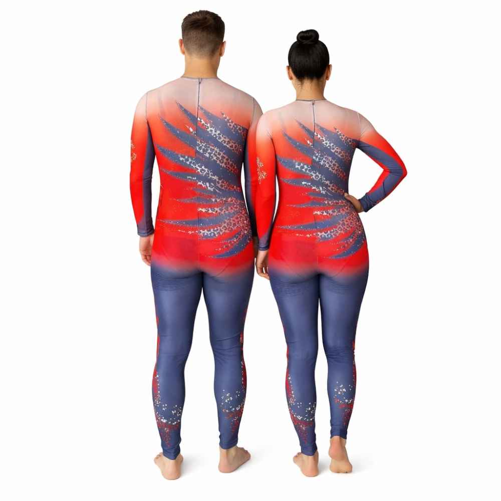 Unite power, devotion, and artistry in this spiritually inspired unisex unitard, crafted to elevate every performance with purpose and grace. Designed with exclusive ombre and leopard-print sunray patterns, this costume brings divine energy to modern movement.