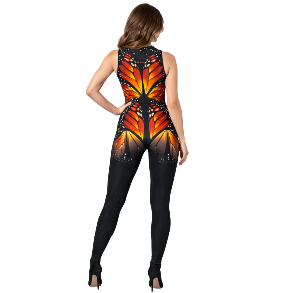 Its butterfly print blends black, rust, yellow, and white hues into a textured, artistic pattern that immediately locks the spotlight when you step on the stage. The rib-finished neck and armholes of the sleeveless design provide a smooth, irritation-free fit, while a back zip gives a sleek look to the outfit.