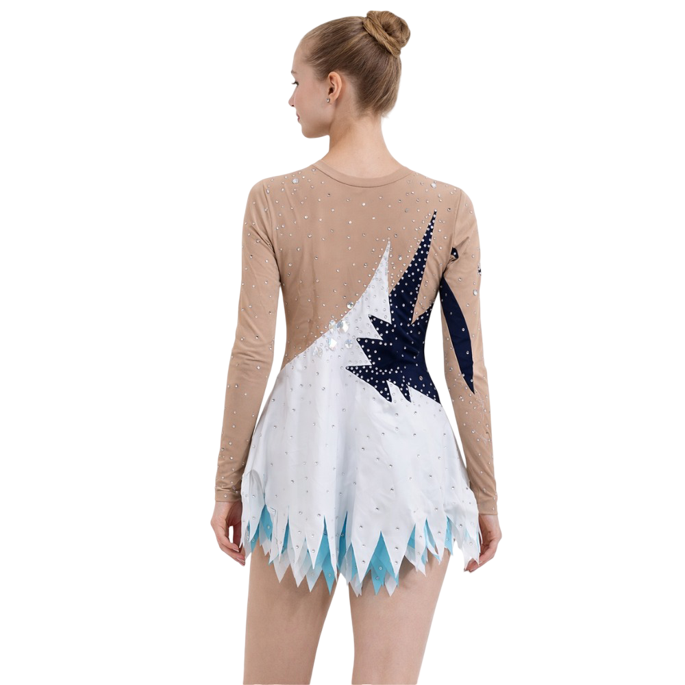 - Having a zigzag hem pattern and a unique bottom design that enhances flow and rhythm during dance and gymnastic routines.