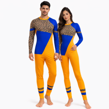 Vibrant Leopard Texture Unitard in Blue and Yellow Color 🔥 27% OFF